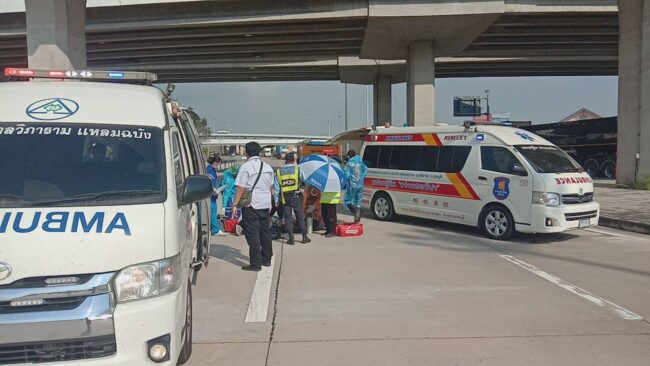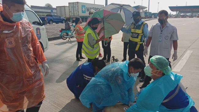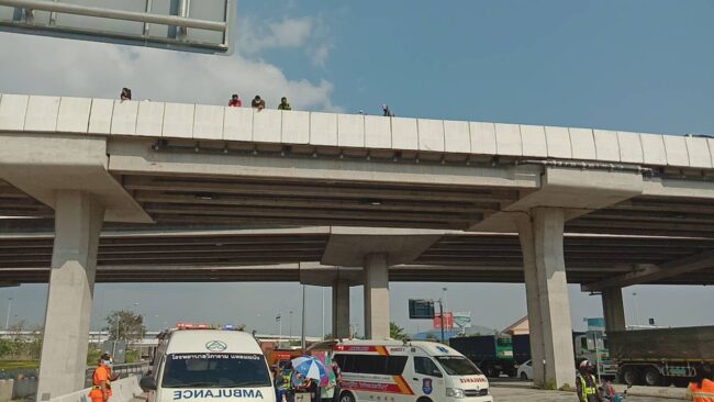 สอบถาม น.ส.ชรัชฎา ประภารัตน์ เจ้าหน้าที่ควบคุมระบบทางหลวง กล่าวว่า ก่อนเกิดเหตุตนเองได้รับแจ้งจาก รปภ. ว่ามีคนตกมาจากสะพานจึงได้รีบวิ่งไปตรวจสอบ และแจ้งเจ้าหน้าที่ทันที