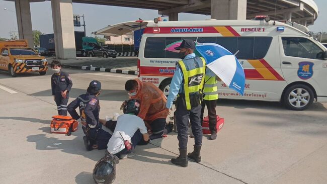 เมื่อเวลา 15.30 น. วันที่ 13 มกราคม 2565 ร.ต.ท.ราชัน ไชยพิณ รอง สว.สอบสวน สภ.หนองขาม อ.ศรีราชา จ.ชลบุรี ได้รีบแจ้งว่ามีรถจักรยานยนต์เสียหลักพุ่งชนขอบสะพานเกือกม้า คนขับกระเด็นตกลงมากระแทกพื้น เสียชีวิตคาที่ เหตุเกิดบริเวณสะพานเกือกม้า ใกล้เคียงด่านเก็บเงินหนองขาม ฝั่งขาเข้าแหลมฉบัง ม.1 ต.หนองขาม อ.ศรีราชา จ.ชลบุรี จึงรีบรุดไปตรวจสอบ พร้อมด้วยเจ้าหน้าที่หน่วยกู้ภัยสว่างประทีป ศรีราชา