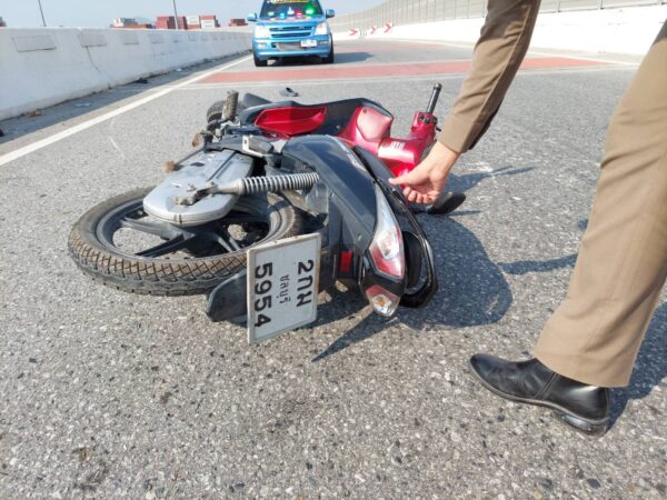สาวใหญ่ขับรถจักรยานยนต์เสียหลักชนขอบทาง พุ่งตกสะพานกลับรถหนองขาม เสียชีวิต