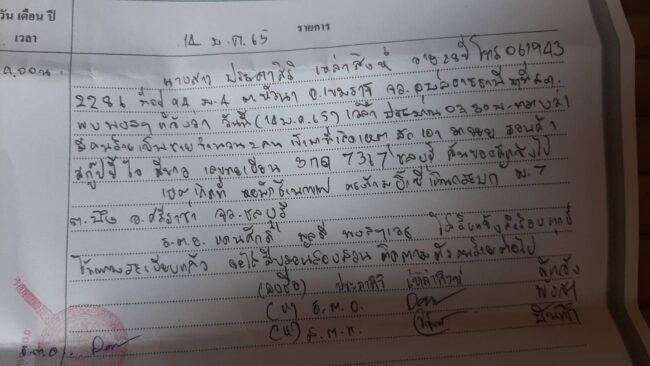 จากการสอบถาม นางสาวประภาสิริ เจ้าของรถจักรยานยนต์ กล่าวว่า เมื่อวันที่ 13 ม.ค. ตนเองเลิกงานจากโรงงานย่านมาบปู ตำบลเขาคันทรง อำเภอศรีราชา จังหวัดชลบุรี ช่วงเวลา 20.00 น. และมาจอดรถไว้หน้าห้องพัก และล็อคกุญแจเรียบร้อยจนเข้านอนจน ถึงเวลา 5.00 น.
