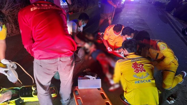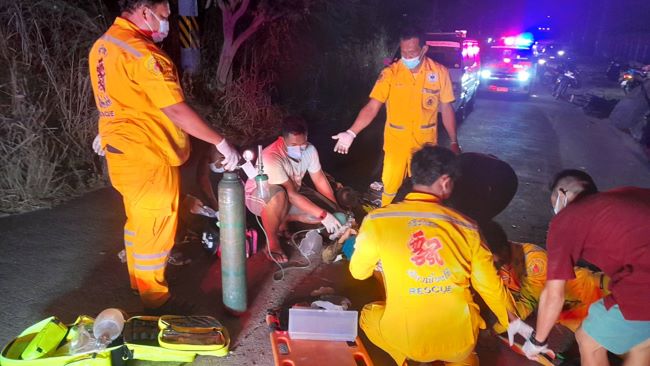 เมื่อเวลา19.20น.วันที่14ม.ค.65 ร.ต.อ.เรืองสิทธิ์ นาวีรัตนวิทยา รองสว.เวรสอบสวนสภ.บ่อวินได้รับแจ้งเหตุรถกระบะชนรถจยย.ที่ถนนสายปิ่นทอง-ยางเอนหมู่2ต.บ่อวินอ.ศรีราชามีผู้เสียชีวิตคาที่1รายบาดเจ็บสาหัส1รายโดยคนขับรถกระบะมีอาการมึนเมารุนแรงไปไหนไม่รอดนอนรอตำรวจอยู่ในที่เกิดเหตุ ส่วนผู้บาดเจ็บอาการสาหัสแขนและขาทั้ง2ข้างรวมทั้งซี่โครงหักหมดทางอาสากู้ภัยทำการปฐมพยาบาลอย่างเร่งด่วนก่อนรีบนำตัวส่งโรงพยาบาลแหลมฉบังให้แพทย์ทำการอาการอย่างเร่งด่วนซึ่งทราบชื่อว่านางสาวนริศรา สัพโพ อายุ35ปีเป็นสาวโรงงานในนิคมปิ่นทอง3 ซึ่งขี่รถจยย.ยี่ห้อฮอนด้าเวฟเอ็กสีดำ หมายเลขทะเบียน วงล-602กทม.สภาพรถด้านหน้าได้รับความเสียหาย
