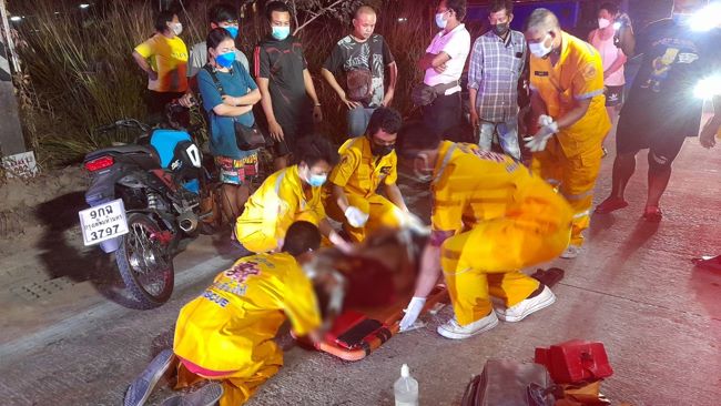 หนุ่มวัย 19 ปี ขี่รถจยย.ชนสุนัขที่วิ่งตัดหน้ารถล้มหน้าผากกระแทกพื้นถนนเป็นแผลลึกยาวส่วนสุนัขวิ่งหลบหนีไปลอยนวล