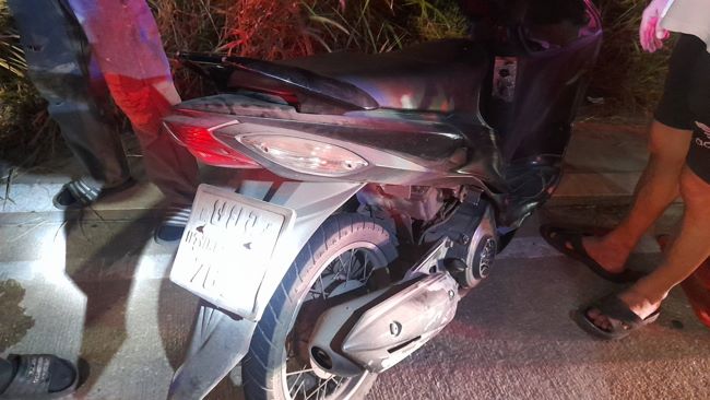 หนุ่มวัย 19 ปี ขี่รถจยย.ชนสุนัขที่วิ่งตัดหน้ารถล้มหน้าผากกระแทกพื้นถนนเป็นแผลลึกยาวส่วนสุนัขวิ่งหลบหนีไปลอยนวล (มีคลิป)