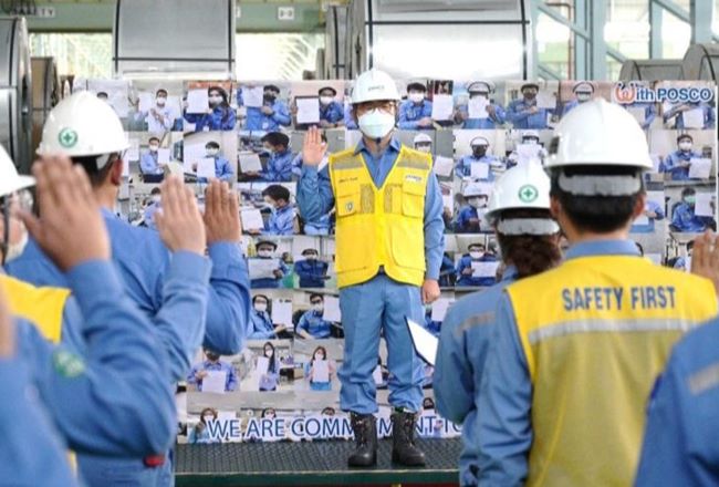 ระยอง #ประธานบริษัทโพสโค โค้ทเต้ด สตีล (ประเทศไทย) รับตำแหน่งวันแรก นำคณะผู้บริหารและพนักงาน ทำพิธีปฏิญาณตนด้านความปลอดภัย