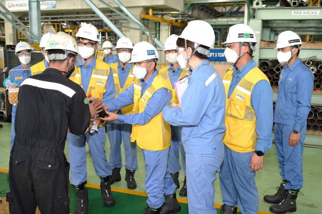 วันที่ 31 มกราคม 2565 ท่านประธาน SEO YOUNGKI เดินทางเข้ารับตำแหน่งที่ บริษัท โพสโค โค้ทเต้ด สตีล (ประเทศไทย) จำกัด หรือ POSCO TCS ตั้งอยู่ที่ 7/448 ม.6 นิคมอมตะซิตี้ ต.มาบยางพร อ.ปลวกแดง จ.ระยอง เริ่มการทำงานวันแรกโดยนำคณะผู้บริหารและพนักงานบริษัทฯ ร่วมพิธีให้คำมั่นสัญญาด้านความปลอดภัย ประจำปี 2565 เพื่อแสดงออกถึงความมุ่งมั่นที่จะทำงานให้ปลอดภัย พนักงานทุกคน ได้กล่าวคำมั่นสัญญาว่า