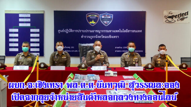 เมื่อวันที่ 11 กุมภาพันธ์ ที่ศูนย์ปฏิบัติการปราบปรามอาชญากรรมทางเทคโนโลยีสารสนเทศ ตำรวจภูธรจังหวัดฉะเชิงเทรา (ศปอส.ภ.จว. ฉะเชิงเทรา) นำโดย พล.ต.ต.นันทวุฒิ สุวรรณละออง ผบก.ภ.จว.ฉะเชิงเทรา, พ.ต.อ.ชาตรี สุขศิริ รอง ผบก.ภ.จว.ฉะเชิงเทรา, พ.ต.อ.พงศ์พัชร์ แจ้งหมื่นไวย์ ผกก.สส.ภ.จว.ฉะเชิงเทรา, พ.ต.อ.พิทูรย์ พัฒนชัย ผกก.สภ.เมืองฉะเชิงเทรา, พ.ต.อ.จิรวัฒน์ ยอดกระโหม ผกก.สภ.แสนภูดาษ พร้อมเจ้าหน้าที่ตำรวจ ได้ร่วมกันแถลงข่าวการระดมกวาดล้างอาชญากรรมฯ ห้วงวันที่ 28 มกราคม – 11 กุมภาพันธ์ 2565