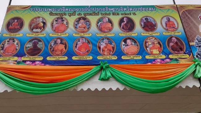 พระอาจารย์สมคิด ศิษย์เอกหลวงปู่ก๋วนแห่งวัดตะเคียนทอง ล.ป.ทองสุข วัดหนองฆ้อ ศิษย์หลวงปู่ทิมวัดละหารไร่ ระยอง ล.พ.คำนวณ วัดแก้วเจิญ ศิษย์หลวงพ่อหยอดวัดแก้วเจริญ พระครู.วิชัย วัดหัวเด่น (สายล.พ กวย) ล.พ.ส่วน วัดหนองคล้า ชลบุรี ล.พ.รวย วัดมาบตาพุด ระยอง หลวงพ่อวิญญู สำนักสงฆ์หนองหมาก ปราจีนบุรี หลวงพ่อทอง วัดบ้านไร นครราชสีมา หลวงพ่อเฉลิม วัดพวงนิมิต สระแก้ว รวม 16 องค์ซึ่งล้วนเป็นพระเกจิอาจารย์ดังแห่งยุคนี้ ร่วมปลุกเสกพระสรรเพชญจักรพรรดิหลวงพ่อทองสำเร็จปางนาคปรกหน้าตัก 59 นิ้วสูง 4 เมตร 59 เซนติเมตร และเหรียญราชาเวสสุวรรณ รวยพันล้าน หรือหากท่านใดไม่สามารถที่จะเดินทางมาร่วมงานในครั้งนี้ได้แต่อยากร่วมทำบุญบริจาคทรัพย์ สามารถบริจาคได้ที่ ธนาคารกรุงไทย ชื่อบัญชี วัดเขาช่องลม หมายเลขบัญชี 5930-270341 หรือจะร่วมทำบุญตามศรัทธาและจัดตั้งโรงทานก็สามารถสามารถติดต่อได้ที่ 064-1700645พระครูปลัดสัมพันธ์พิพัฒน์ เจ้าอาวาสวัดเขาช่องลม 089-1726797 พระธงชัย กิตติธัมโม ผู้ช่วยเจ้าอาวาส 082-6369841