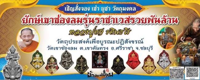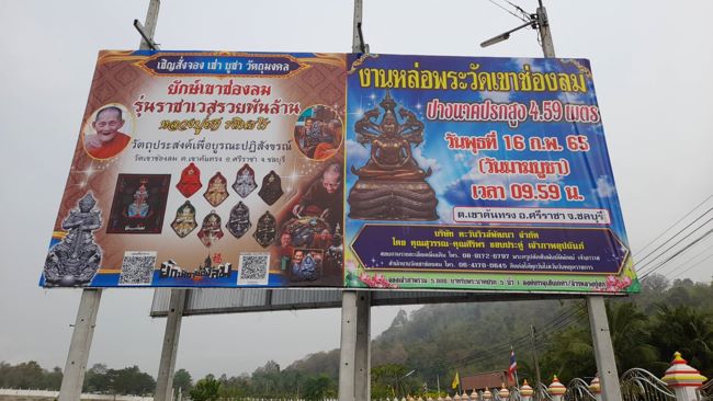 วันที่ 16 กพ.เวลา09.09 น.พระครูปลัดสัมพันธ์พิพัฒน์ เจ้าอาวาสวัดเขาช่องลม ตำบลเขาคันทรง อำเภอศรีราชา จังหวัดชลบุรี ขอเชิญญาติโยมสาธุชนทุกท่าน ร่วมในพิธีพุทธาภิเษกเททองหล่อพระสรรเพชญจักรพรรดิ บวชพราหมณ์/บวชศีลจาริณี นุ่งขาวห่มขาว และร่วมพิธีปลุกเสก เหรียญราชาเวสสุวรรณ รวยพันล้าน หลวงปู่ฮกวัดเขาช่องลม รุ่น 1 ร่วมกองบุญต่างๆได้ตั้งแต่วันที่ 14-15-16 กุมภานี้ งานมี 3 วัน บวชพราหมณ์/บวชศีลจาริณี นุ่งขาวห่มขาว เข้าร่วมพิธี ได้ตั้งแต่วันที่ 14 กุมภานี้ และวันที่ 16 กพ.2565 ซึ่งตรงกับวันมาฆะบูชา เวลา09.09 น.เททองหล่อพระสรรเพชญจักรพรรดิหลวงพ่อทองสำเร็จปางนาคปรกหน้าตัก 59 นิ้วสูง 4 เมตร 59 เซนติเมตร พิเศษ เจ้าภาพหลวงพ่อทองสำเร็จ ขนาดหน้าตัก 5 นิ้ว