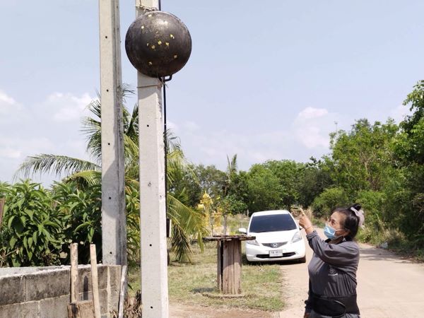 จ.นครนายก : เรื่องแปลกแต่จริง เจ้าของร้านขายเครปและน้ำปั่นเอากะทะแม่หม้ายลงยันต์มาห้อยไว้ที่เสาไฟฟ้าข้างบ้านมีความเชื่อเรื่องค้าขายดีและเรื่องโชคลาภ