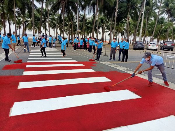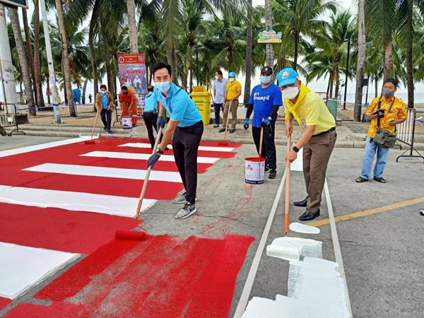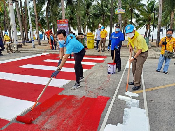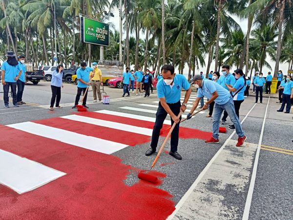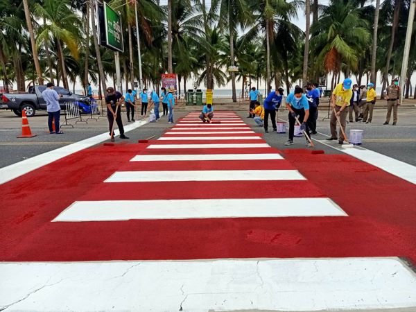 ชลบุรี # เทศบาลเมืองแสนสุข อำเภอเมืองชลบุรี จัดกิจกรรมทาสีทางม้าลาย 3 จุด บริเวณถนนเลียบชายหาดบางแสน เพื่ออำนวยความสะดวกให้กับประชาชนและนักท่องเที่ยวในการเดินข้ามถนนด้วยความปลอดภัย