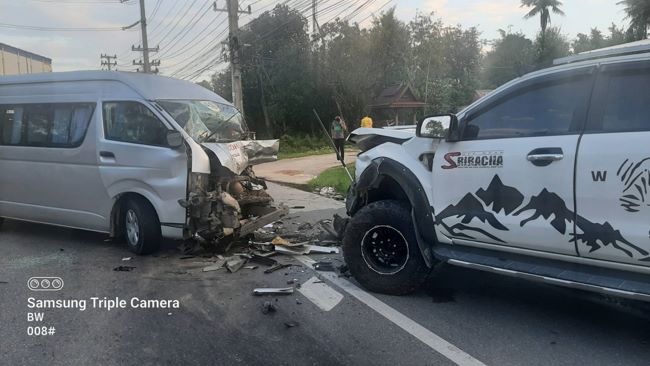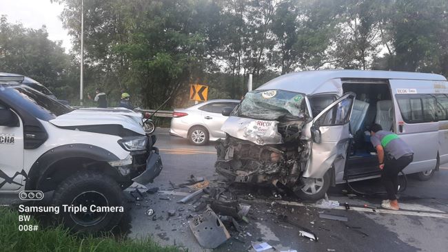 ชลบุรี-กระบะหลับในข้ามเลนไปชนรถตู้รับ-ส่งพนักงาน เจ็บ 9 ราย