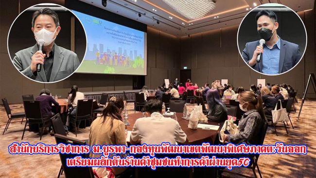 เมื่อวันที่ 24 กุมภาพันธ์ ที่โรงแรม อมารี พัทยา นายพีรพัฒน์ มั่งคั่ง ผู้อำนวยการสำนักบริการวิชาการ มหาวิทยาลัยบูรพา ดร.ศุภฤทัย อิฐงาม ผู้อำนวยการสถาบันภาษาร่วมกล่าวต้อนรับ ดร.เพ็ชร ชินบุตร รองเลขาธิการ สายงานการลงทุนและการต่างประเทศ สกพอ.(eec) และผู้บริหารกองทุน อีอีซี. พร้อมทั้งกล่าวเปิดงานว่า ในการอบรมครั้งนี้มีผู้แทนชุมชน จากตำบลต่างๆ ในจังหวัดระยอง และจังหวัดชลบุรีเข้าร่วมกว่า 50 คน เพื่อเข้ารับการอบรมและแลกเปลี่ยนเรียนรู้ รวมทั้งเข้าร่วมกิจกรรมพัฒนาศักยภาพชุมชน