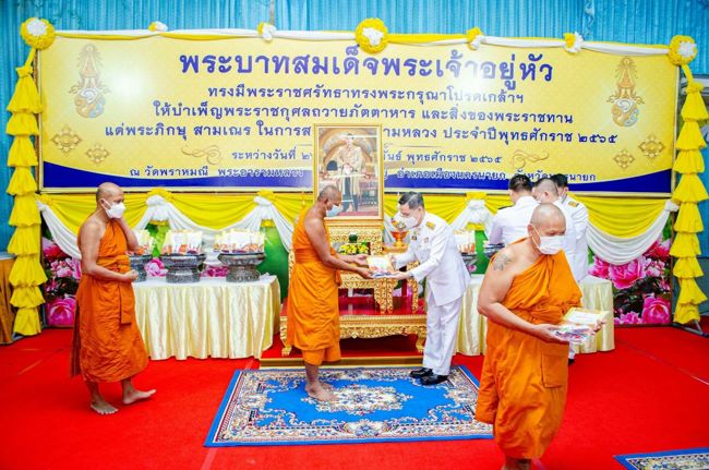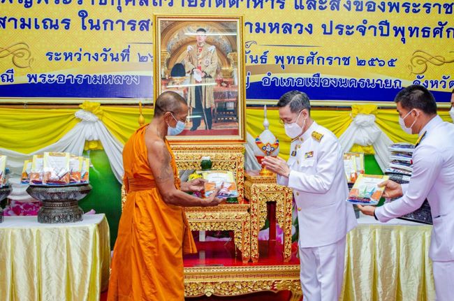จ.นครนายก – พระบาทสมเด็จพระเจ้าอยู่หัว ทรงพระกรุณาโปรดเกล้าฯ พระราชทานให้ถวายภัตตาหารเพล และสิ่งของพระราชทาน แด่พระภิกษุ สามเณร ในการสอบบาลีสนามหลวง ประจำปี ๒๕๖๕