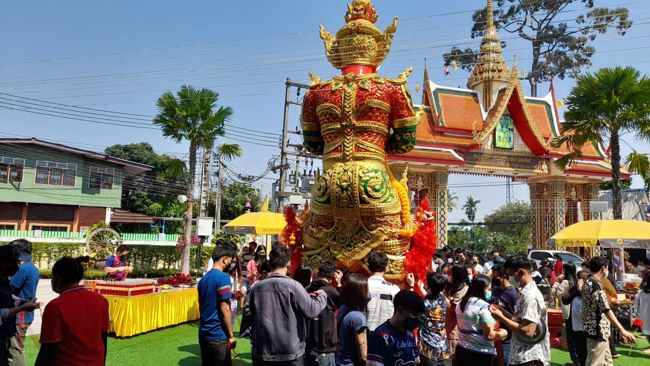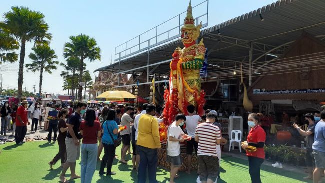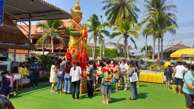 แห่ขอเลขเด็ด ‘ท้าวเวสสุวรรณโณ’(ท้าวเวสเศรษฐี) กันแน่นวัดจุกกระเฌอ ศรีราชา ทิ้งโค้งก่อนวันหวยออก