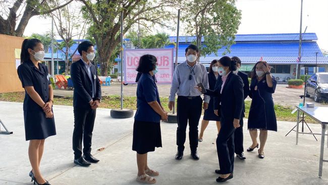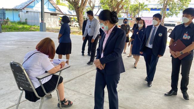 #ชลบุรี รองเลขาธิการ กศน.ตรวจเยี่ยมสนามสอบการศึกษา 2/64 คุมเข้มมาตรการโควิด