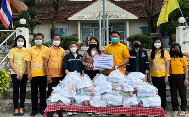 ชลบุรี-ภาคเอกชนมอบถุงยังชีพให้กับองค์การบริหารส่วนตำบลบ่อวินเพื่อส่งต่อผู้ที่ได้รับผลกระทบจากโควิค-19