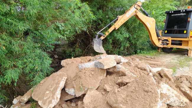 วันนี้ 2 มีนาคม 2565 นายสิรวิชฐ์ อำไพวงษ์ นายกองค์การบริหารส่วนตำบลบ่อวิน ได้รับการร้องเรียนจากประชาชนที่พักอาศัยอยู่ในหมู่บ้านเทพประทานพร 3 หมู่3 ตำบลบ่อวิน อำเภอศรีราชา ว่า ที่ท้ายหมู่บ้านติดกับลำห้วยสาธารณประโยชน์ เวลาฝนตกหนักน้ำได้กัดเซาะริมตลิ่งทำให้พื้นดินใกล้ถล่มอาจมีผลกระทบกับบ้านเรือนประชาชนประมาณ 10 กว่าหลังคาเรือนที่อยู่ติดกับลำห้วยสาธารณประโยชน์ระยะทางประมาณ 80-100 เมตร หลังรับเรื่องร้องเรียนจึงได้สั่งการให้ นายบรรพต อุดมศักดิ์ รองนายกองค์การบริหารส่วนตำบลบ่อวิน นำเจ้าหน้าที่กองช่างองค์การบริหารส่วนตำบลบ่อวิน ลงไปตรวจสอบพบว่าตลิ่งใกล้ยุบลงมาในลำห้วยอาจเป็นอันตรายกับบ้านเรือนที่อยู่ติดลำห้วย จึงได้นำเครื่องจักรกลหนัก อาทิรถ JCB และรถแบคโฮ ลงไปปรับพื้นที่และนำวัสดุเศษขี้ปูนเข้ามาจัดเรียง เสริมแนวคันตลิ่งเพิ่มขึ้นเพื่อเพิ่มความแข็งแรงของตลิ่ง เพื่อจะรองรับฤดูฝนที่จะมาถึง