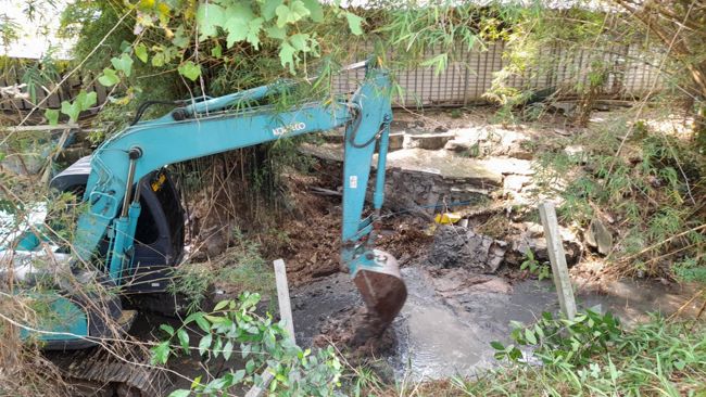 อบต.บ่อวินนำรถJCB และรถแบคโฮ ลงไปปรับพื้นที่ลำห้วยสาธารณะประโยชน์หลังน้ำกัดเซาะริมตลิ่งจนประชาชนในหมู่บ้านได้รับผลกระทบมาร้องเรียนให้ช่วย