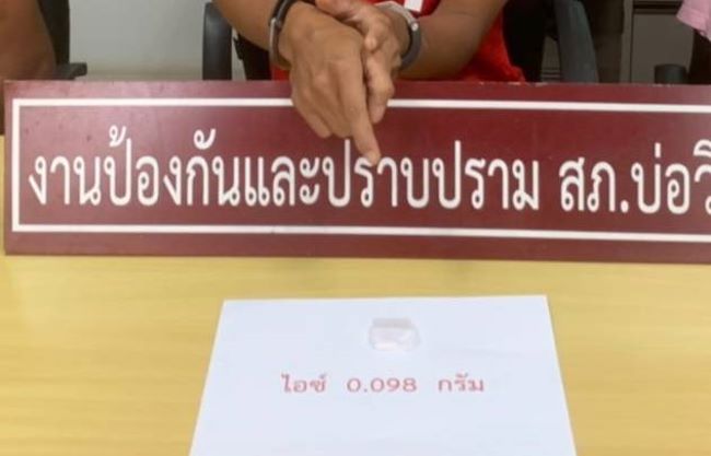 พ.ต.อ.ปพนพัชร์ ใบยา ผกก.สภ.บ่อวินมีคำสั่งให้ พ.ต.ท.พงศ์สวัสดิ์ วงศ์วาน รอง.ผกก.ป. พ.ต.ต.อัครชัย วงศ์คำโสม สวป. ร.ต.ท.สมศักดิ์ โพธิ์ราช รอง.สวป. พร้อมกำลังเจ้าหน้าที่ชุดปักกลด เข้าปิดล้อมตรวจค้นบ้านเช่าไม่มีเลขที่พื้นที่หมู่4 ต.เขาคันทรง อ.ศรีราชา จ.ชลบุรี หลังจากที่ได้รับรายงานว่ามีการเข้าไปนัดซื้อขายยาเสพติดและมั่วสุมเสพยากัน ในบ้านพักคนงานไม่มีเลขที่ จึงรวบตัวเอาไว้ได้ทั้งหมดจำนวน3 คน เป็นชาย2 คนและหญิง1คน โดยหนึ่งในนั้นคือ นายณัฐพล(สงวนนามสกุล) อายุ 28 ปี ที่เป็นเอเย่นค้ายาตรวจค้นพบยาไอซ์บรรจุถุงพลาสติกน้ำหนัก0.098กรัม นายณัฐพล ยอมรับว่ายาไอซ์เป็นของตนคนเดียวส่วนคนอื่นๆแค่มาร่วมเสพยาเท่านั้นและผู้เสพอีก2รายเจ้าหน้าที่ไม่เชื่อจึงควบคุมตัวทั้งหมดส่งพนักงานสอบสวนเพื่อดำเนินคดีต่อไป