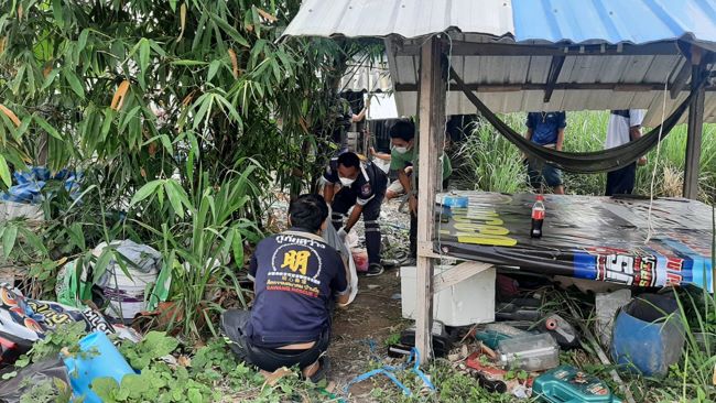 เมื่อเวลา 14.00 น.วันที่ 3มีนาคม พ.ต.ท.เจริญ บุญสิทธิ์ สารวัตรสอบสวน สภ.บ่อวิน ได้รับแจ้งมีคนผูกคอเสียชีวิตหลังอู่ซ่อมรถ เลขที่221/32 ม.4 ต.บ่อวิน อ.ศรีราชา จ.ชลบุรี จึงรุดไปตรวจสอบพร้อมเจ้าหน้าที่หน่วยกู้ภัยศีลธรรมสมาคมบ้านบึงจุดบ่อวิน