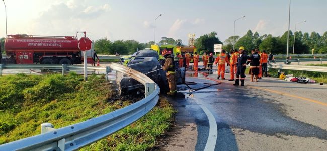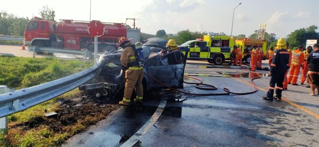 เมื่อเวลา 12.30 น.วันที่ 6 มีนาคม 2565 เจ้าหน้าที่กู้ภัยมอเตอร์เวย์ รีบแจ้งเหตุรถยนต์เก๋งเสียหลักชนการ์ดเรล เกิดไฟลุกไหม้ เหตุเกิดที่ บนทางหลวงพิเศษหมายเลข 7 สายกรุงเทพฯ-บ้านฉาง ช่วงพัทยา-มาบตาพุดหลักกิโลเมตรที่ 1+300 ฝั่งมุ่งหน้าเข้ากรุงเทพมหานคร หลังเกิดเหตุจึงพร้อมด้วยกำลังเจ้าหน้าที่ตำรวจทางหลวง เจ้าหน้าที่กู้ภัย เจ้าหน้าที่ดับเพลิงเทศบาลห้วยใหญ่ รีบไปตรวจสอบ