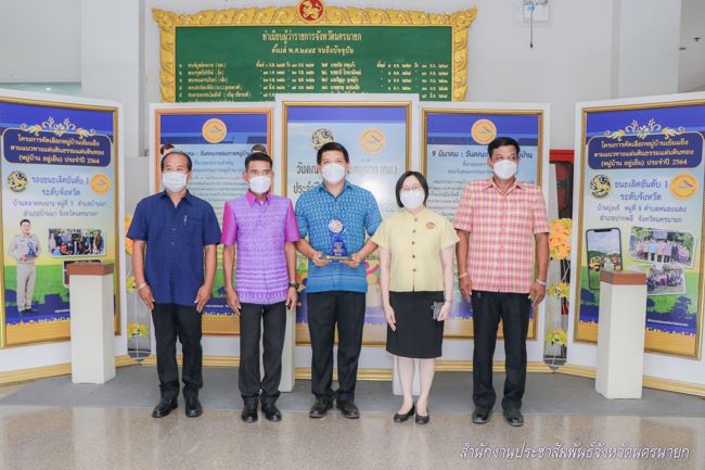 จังหวัดนครนายก ได้ดำเนินการคัดเลือกหมู่บ้านเข้มแข็ง ตามแนวทาง “แผ่นดินธรรม แผ่นดินทอง” (หมู่บ้านอยู่เย็น) ประจำปี ๒๕๖๔ โดยมีวัตถุประสงค์ เพื่อสร้างแรงบันดาลใจ และให้รางวัลแก่หมู่บ้านที่คณะกรรมการหมู่บ้านมีผลงานโดดเด่น เป็นที่ประจักษ์ สามารถเป็นแบบอย่างในการปฏิบัติให้แก่หมู่บ้านอื่นๆในรอบปีที่ผ่านมา จังหวัดนครนายก ได้ดำเนินการคัดเลือกหมู่บ้านที่ได้รับรางวัล ประจำปี ๒๕๖๔ เสร็จสิ้นแล้ว ในระดับจังหวัด หมู่บ้านที่ได้รับรางวัลชนะเลิศ ได้แก่ บ้านบุ่งเข้ หมู่ที่ ๘ ตำบลหนองแสง อำเภอปากพลี รองชนะเลิศอันดับ ๑ ได้แก่ บ้านตลาดดงยาง หมู่ที่ ๓ ตำบลบ้านนา อำเภอ บ้านนา รองชนะเลิศอันดับ ๒ ได้แก่ บ้านคลองใหญ่ หมู่ที่ ๔ ตำบลท่าทราย อำเภอเมืองนครนายก
