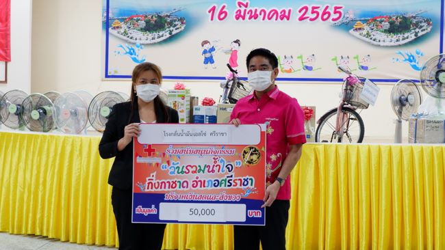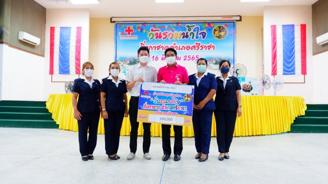 ภาครัฐและเอกชน ในพื้นที่อำเภอศรีราชา ร่วมมอบสิ่งของในวันรวมน้ำใจชาวศรีราชา เพื่อนำไปร่วมในการจัดงานนมัสการพระพุทธสิหิงส์ ,งานสงกรานต์ และงานกาชาด จังหวัดชลบุรี