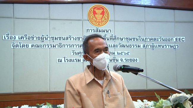 เมื่อวันที่ 18 มีนาคม 2565 เวลา 09.00 น. ที่ห้องสุนทรภู่ โรงแรม สตาร์ คอนเวนชัน อำเภอเมือง จังหวัดระยอง คณะกรรมาธิการการการศาสนาศิลปะและวัฒนธรรมสภาผู้แทนราษฏร ร่วมกับสถาบันการสร้างชาติจัดสัมมนาเครือข่ายผู้นำชุมชนสร้างชาติ หลักสูตรผู้บริหารระดับสูง พื้นที่ศึกษาภาคตะวันออก EEC เพื่อพัฒนาไตรภาวะผู้นำชุมชนแห่งอนาคต โดยให้ความสำคัญกับภาคประชาสังคม รวมสามภาคกิจ ได้แก่ รัฐกิจ ,ธุรกิจ ,ประชากิจ ทางสถาบันฯ เน้น ชุมชนสร้างชาติ ,วัดสร้างชาติ และโรงเรียนสร้างชาติ มีผู้นำชุมชนและผู้บริหารระดับสูงในพื้นที่ภาคตะวันออกให้ความสนใจเข้าร่วมสัมมนาเป็นจำนวนมาก