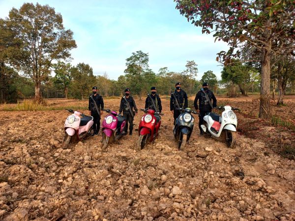 พบเอกสารรถเป็นสำเนารายการจดทะเบียน ชื่อผู้ซื้อนายปิยะชาติ ขาวแสง บ้านเลขที่ 13 ซ.3/1 ถ.เยาวราช ต.ตลาดใหญ่ อ.เมือง จ.ภูเก็ต และคันที่ 5.เป็นรถ จยย.ยี่ห้อ ฮอนด้า รุ่น Scoopy I สีชมพู – เทา หมายเลขแผ่นป้ายทะเบียน 2ขก-4913 หมายเลขตัวถัง พบเอกสารรถเป็นสำเนารายการจดทะเบียน ชื่อผู้ครอบครองรถ นางสาวณัฐพร ก้อนคำ บ้านเลขที่ 495/2 ซ.ไชยณรงค์ ต.ในเมือง อ.เมือง จ.นครราชสีมา จากนั้นเจ้าหน้าที่ได้นำรถ จยย.ทั้งหมดส่งให้ชุดควบคุมกรมทหารพรานที่ 12 ดำเนินการต่อไป