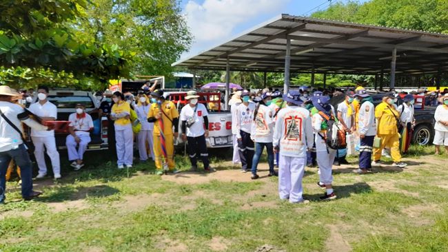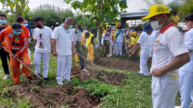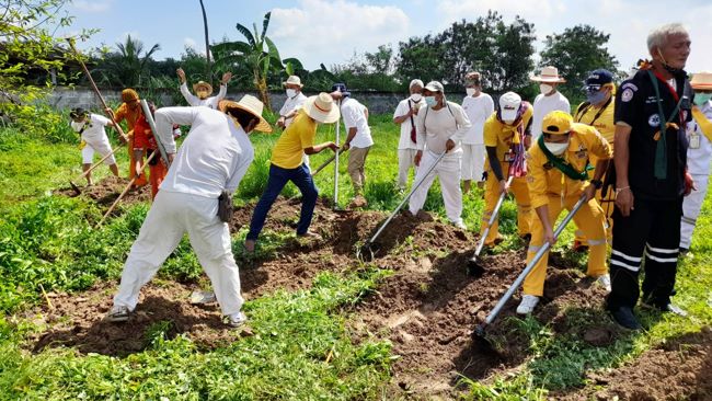 พุทธสมาคมเพียวเยี้ยงไท้ศรีราชาเปิดหลุมศพในงานมหากุศลเก็บศพไร้ญาติ ล้างป่าช้า ครั้งที่ 3 ที่สุสานเพียวเยี้ยงซัวจึง บ้านเนินโมก วันแรกอย่างคึกคัก