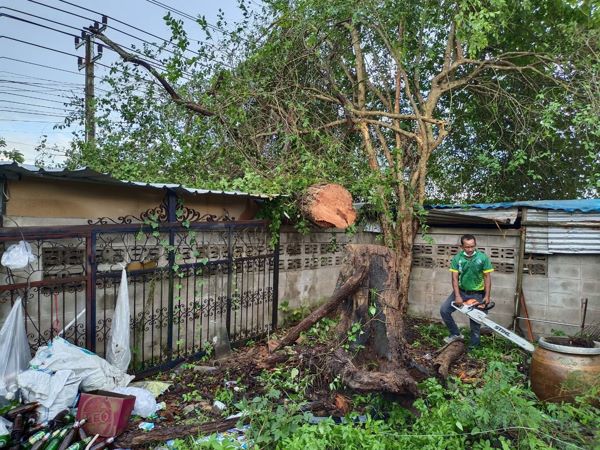 ชลบุรี-แม่ค้าขายอาหารอีสาน หอบลูกวิ่งหนีตาย ถูกพายุฝนกระหน่ำ ต้นไม้ล้มทับร้านค้า
