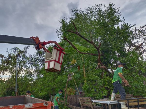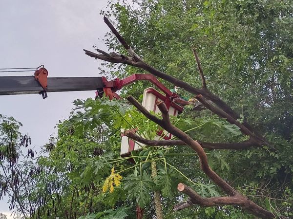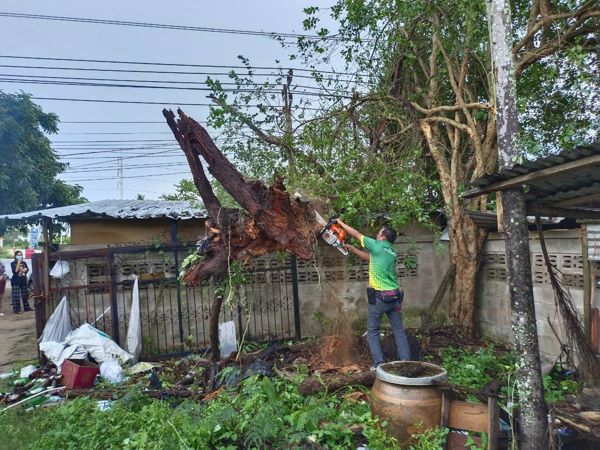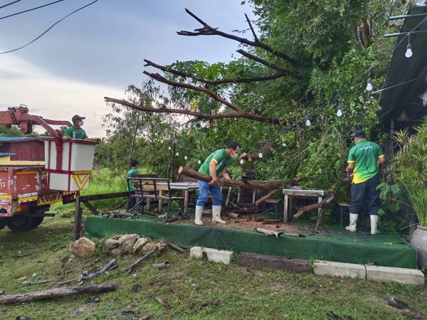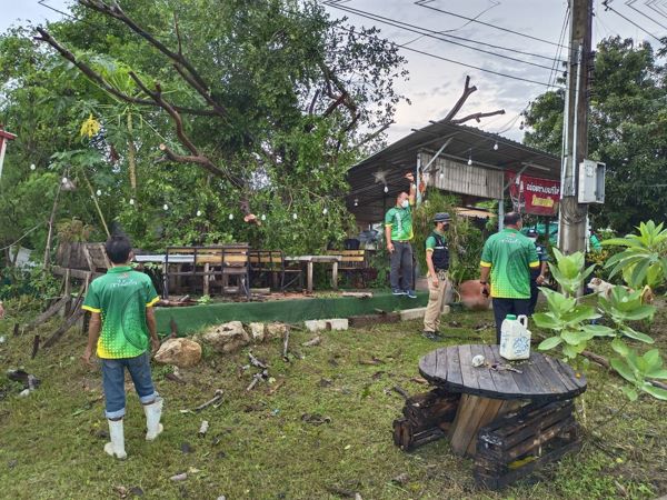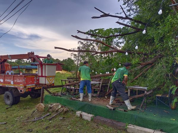 หลังทำการตรวจสอบทรัพย์สินอื่นๆ ภายในร้าน ไม่ได้รับความเสียหายมีแต่เพียงหลังคาร้านที่สียหายและไม่มีผู้ได้รับบาดเจ็บ เจ้าหน้าที่ อบต.เขาไม้แก้วจึงใช้เครื่องมือตัดต้นไม้ที่ทับร้านค้าออกเพื่อให้การช่วยเหลือเบื้องต้น