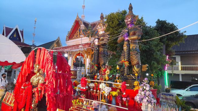 เมื่อเวลา19.30น.(18พ.ค.2565) ที่วัดหนองยายบู่ ตำบลหนองขาม อำเภอศรีราชา พระครูปลัดปิ่นพัฒน์ สุวิชาโน รักษาการเจ้าอาวาสวัดหนองยายบู่ ได้ประกอบพิธีบวงสรวงเทวาภิเษก องค์ท้าวเวสสุวรรณโณหน้ายักษ์ จำนวน 2 องค์ที่ตั้งอยู่ด้านหน้าวัด โดยมี นายขวัญเลิศ พานิชมาท ส.ส.ชลบุรี เขตอำเภอศรีราชาเป็นประธานฝ่ายฆราวาส โดยมีพระเกจิอาจารย์ชื่อดัง พระครูมธุรสธรรมภาณ เจ้าอาวาสวัดรังษีสุทธาวาส รองเจ้าคณะอำเภอศรีราชา พระครูธรรมจริยานุกูลสาธิต เจ้าอาวาสวัดหนองค้อ ประกอบพิธีนั่งปรกอธิษฐานจิต พร้อมกับคณะสงฆ์ทรงสมณศักดิ์ 25 รูป สวดเจริญพระพุทธมนต์ ท้าวเวสสุวรรณโณทั้ง 2 องค์สูง 3 เมตร ฐานกว้าง 1 เมตร ที่ อดีตเจ้าอาวาสวัดหนองยายบู่ ได้จัดสร้างขึ้น เมื่อ 3 ปีที่แล้ว