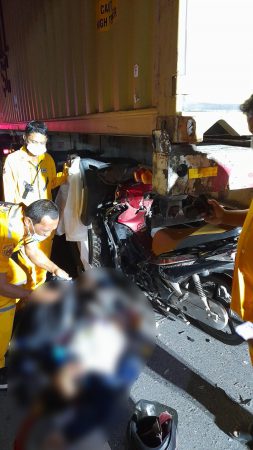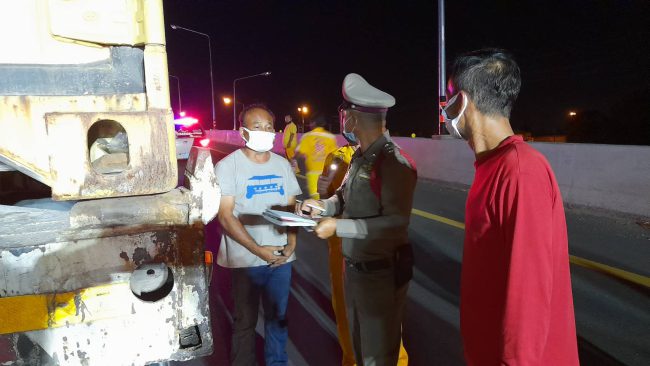 เมื่อเวลา00.45น.วันที่22พ.ค.2565 ร.ต.อ.แดนศักดิ์ พูลดี รองสว.เวรสอบสวนสภ.หนองขาม ได้รับแจ้งเหตุรถจยย.พุ่งชนท้ายรถพ่วง18ล้อที่จอดเสียอยู่บนสะพานหนองแขวะมุ่งหน้าหนองแขวะ บนถนนสายอมตะซิตี้-หนองแขวะ หมู่4ต.บึงอ.ศรีราชา คนขี่จยย.เสียชีวิตคาที่ หลังรับแจ้งจึงประสานอาสาบรรเทาสาธารณภัยอุบัติภัยพุทธสมาคมเพียวเยี้ยงไท้ศรีราชา ออกไปร่วมตรวจสอบเหตุบนนสะพานหนองแขวะช่วงเกือบถึงกลางสะพาน พบรถพ่วง18ล้อยี่ห้ออีซุซุ หัวสีขาว หมายเลขทะเบียนส่วนหัว 74-2120 ชลบุรี ส่วนพ่วง 73-7872ชลบุรี บรรทุกตู้คอนเทรนเน่อร์มีสินค้าเต็มตู้ จอดเสียอยู่และที่ท้ายรถพ่วง18ล้อพบรถจยย.ยี่ห้อฮอนด้าเวฟ110ไอ สีแดง-ดำ หมายเลขทะเบียน 1กพ-2695 สกลนคร ชนกับล้อท้ายรถพ่วง