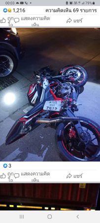 และมีร่างของนายธีรโชติ จันทร์ฤาชัย อายุ28ปี นอนอยู่ช่วงท้ายรถจยย.สภาพศพศีรษะแตกเป็นแนวยาวเนื่องจากกระแทกกับเหล็กท้ายรถพ่วง เลือดไหลนองพื้น เสียชีวิตคาที่ สอบสวนนายปัณณวัชญ์ รังใส อายุ47ปี คนขับรถพ่วง18ล้อให้การว่า รถจอดเสียอยู่บนสะพานเนื่องจากคลัทช์หมด และก่อนเกิดเหตุรถกำลังจะลากรถที่เสียออกจากบนสะพานจึงเก็บกรวยที่วางไว้เป็นจุดสังเกตุว่ามีรถเสียก่อนถึงท้ายรถพ่วง18ล้อออก หลังจากนั้นจึงขึ้นรถเพื่อบังคับรถออกไป รถจยย.ก็ได้วิ่งขึ้นสะพานหนองแขวะมาพุ่งชนท้ายรถพ่วงจนเสียชีวิตดังกล่าว ซึ่งทางเจ้าหน้าที่ตำรวจได้ให้ทางอาสาบรรเทาสาธารณภัยอุบัติภัยฯนำศพผู้เสียชีวิตส่งโรงพยาบาลแหลมฉบังให้แพทย์ชันสูตรต่อไป ส่วนคนขับรถพ่วง18ล้อได้ควบคุมตัวไปสอบสวนเพิ่มเติมที่สภ.หนองขามต่อไป