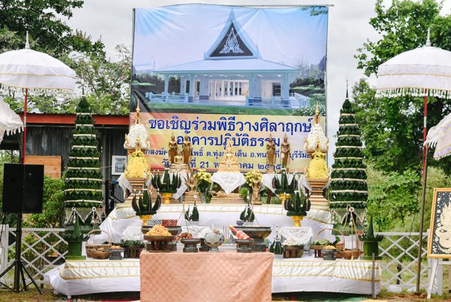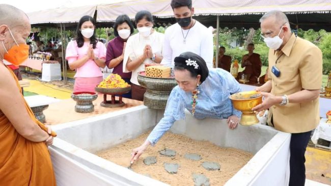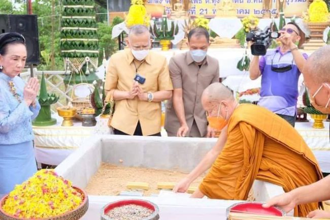 นายกสมาคมส่งเสริมการเลี้ยงไก่แห่งประเทศไทยในพระบรมราชูปถัมภ์ร่วมพิธีวางศิลาฤกษ์อาคารปฏิบัติธรรมสำนักสงฆ์คลองต้นโพธิ์