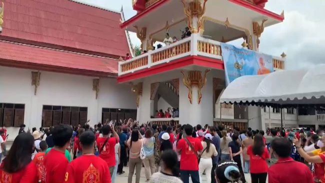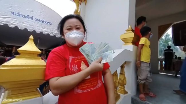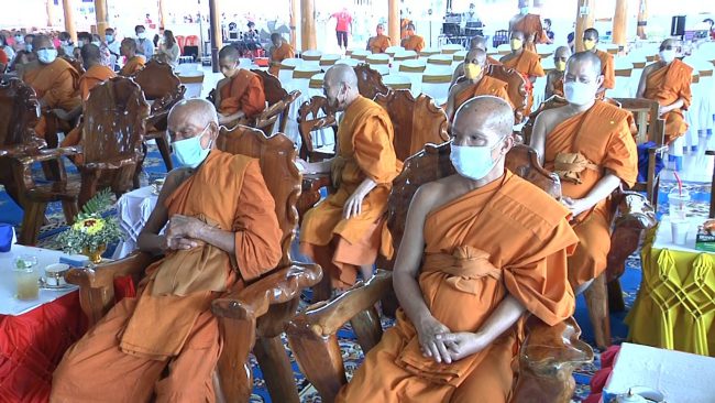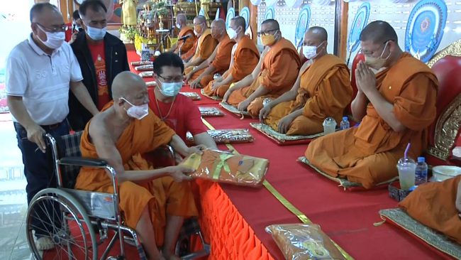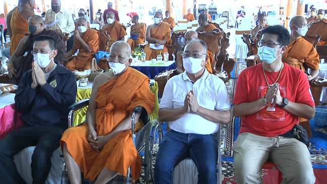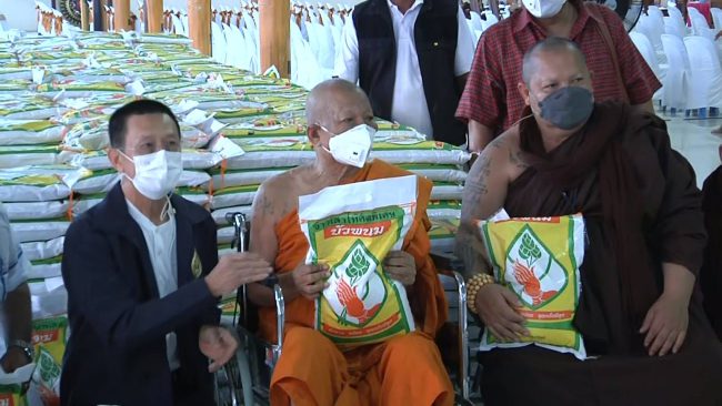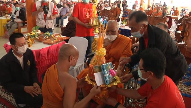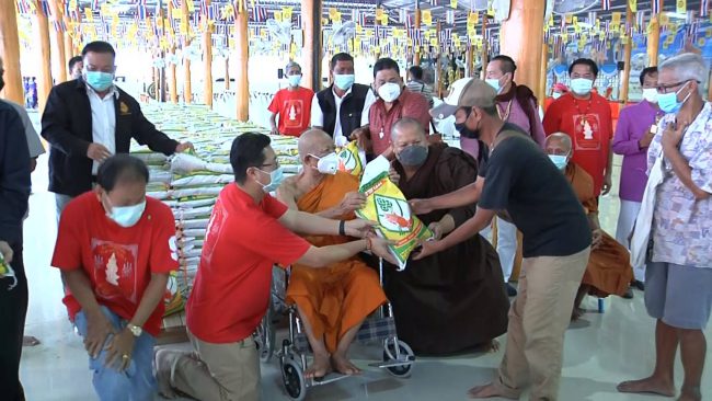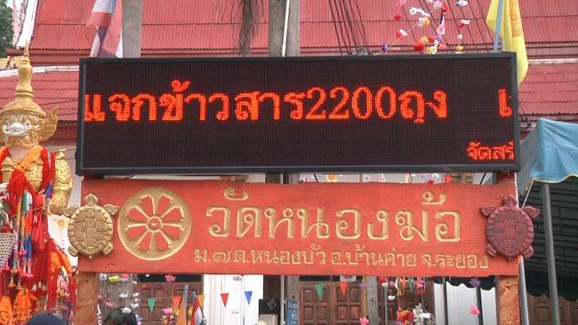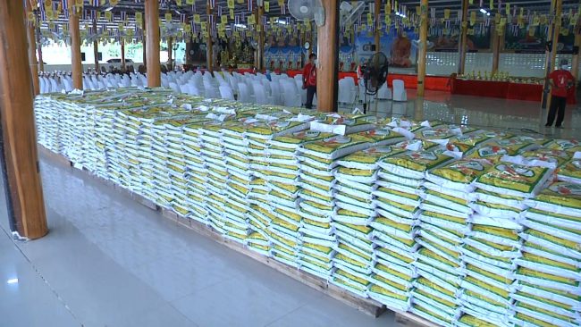 วัดหนองฆ้อ ประชาชนกว่าสองพันคนร่วมพิธีมุทิตาจิต ฉลองอายุวัฒนมงคล 86 ปี หลวงพ่อทองสุข เปิดโรงทานแจกข้าวสาร 2,200 ถุง โปรยทานธนบัตรจำนวน 120,000 บาท