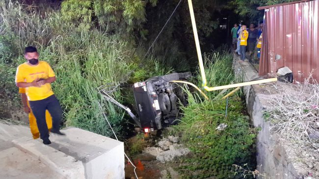 เมาซิ่งกระบะแหกโค้งพุ่งเฉี่ยวหนุ่มใหญ่ที่นั่งคล่อมรถจยย.ริมถนนจนร่วงรถบาดเจ็บแถมรถกระบะยังเสียหลักพุ่งตกลำห้วยจนคนขับได้รับบาดเจ็บ