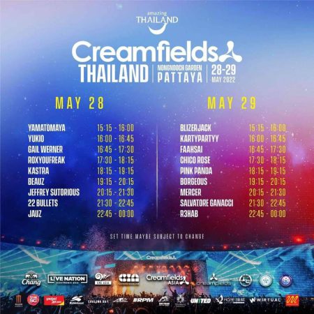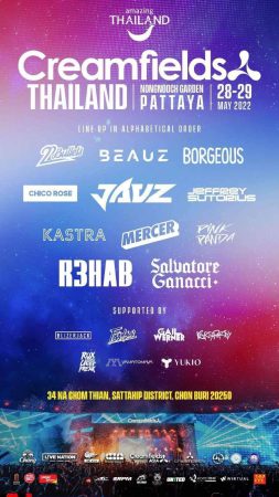 สำหรับเทศกาลดนตรี Creamfields เป็นมหกรรมดนตรีอิเล็กทรอนิกส์ (EDM :Electronic Dance Music) ที่ใหญ่ที่สุดในประเทศอังกฤษ โดยเป็นการนำเสนอการแสดงของดีเจและการแสดงสด ซึ่งจัดขึ้นมาแล้วกว่า 30 ประเทศทั่วโลก ทั้งยุโรป อเมริกาใต้ อมริกาเหนือตะวันออกกลาง โอเซียเนีย และเอเชีย สามารถดึงดูดนักท่องเที่ยวทั่วโลกเข้าร่วมงานได้มากกว่า 4 ล้านคน และยังเป็นเทศกาลดนตรีที่ดีที่สุดอันดับที่ 13 ของโลก เทศกาลดนตรี Creamfields Thailand 2022 กำหนดจัดขึ้น วันเสาร์ที่ 28 และวันอาทิตย์ที่ 29 พฤษภาคม 2565 ตั้งแต่เวลา 16.00-24.00 น. ที่สวนนงนุช พัทยา จ.ชลบุรี