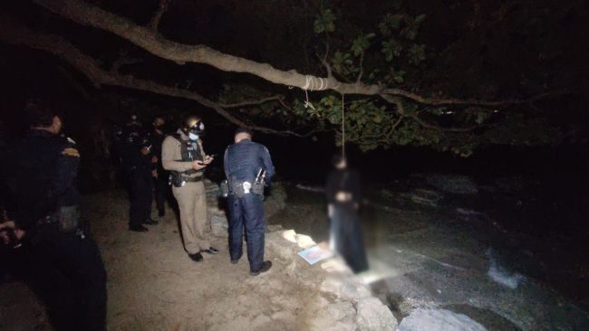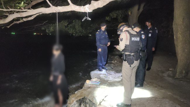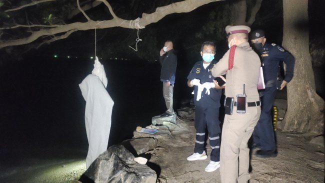 ชลบุรี-ขนลุก ผูกคอดับคาต้นหูกวางริมทะเล แหลมบาลีฮาย