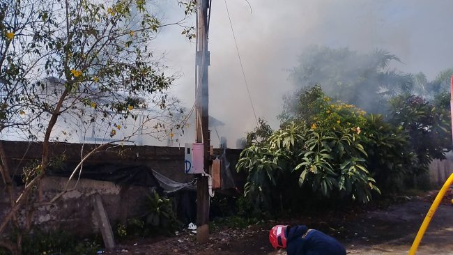 2สามีภรรยารับเหมาก่อสร้างไม่อยู่บ้าน เกิดเพลิงไหม้บ้านชั้นเดียววอดทั้งหลัง จนท.เร่งฉีดน้ำสกัดหวั่นลุกลาม คาดเกิดจากไฟฟ้าลัดวงจร