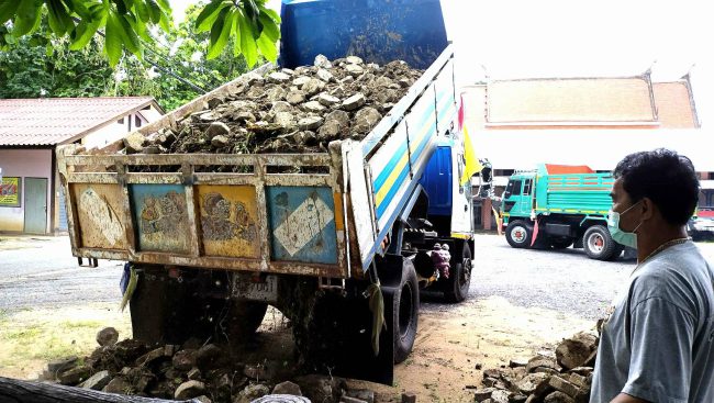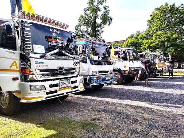 จ.นครนายก : ผู้ประกอบการรถบรรทุกและคนขับพร้อมชาวบ้านตำบลศรีนาวาจิตอาสารวมขบวนรถบรรทุก 6 ล้อ 10 ล้อจำนวน 15 คันจัดขบวนคณะผ้าป่าขนอิฐบล๊อกมาถวายวัดหนองโพธิ์