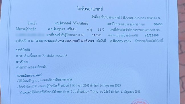 โดยการเข้ารักษาตัวทั้งหมด 6 วัน ทางแม่อยากฝากบอกว่าการเอาลูกมาเรียนก็ฝากความปลอดภัยไว้กับครู แต่มาทำแบบนี้จะหาความปลอดภัยได้ยังไง ก็เข้าใจว่าลูกอาจจะดื้อ แต่เด็กก็ยังเป็นเด็ก ควรอย่าใช้อารมณ์แบบนี้ หรืออย่าไปทำกับเด็กคนอื่นแบบนี้อีก ลูกใครพ่อแม่ก็รัก
