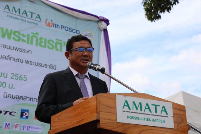 วันที่ 6 มิถุนายน 2565 นายวิบูลย์ กรมดิษฐ์ กรรมการผู้จัดการ บริษัท อมตะซิตี้ ระยอง จำกัด พร้อมด้วยนายอภิชาติ เสกธีระ ผอ.สนง.อมตะซิตี้ ระยอง นายอภิชาติ เงินท้วม นายกอบต.มาบยางพร และนายไชยา เงินท้วม ผู้ใหญ่บ้านหมู่ 6 ต.มาบยางพร อ.ปลวกแดง จ.ระยอง ร่วมกันเปิดโครงการ “ปลูกต้นไม้และสร้างฝายหินเรียง เฉลิมพระเกียรติสมเด็จพระนางเจ้าสุทิดา พัชรสุธาพิมลลักษณ พระบรมราชินี” เนื่องในโอกาสทรงเฉลิมพระชนมมายุครบ 44 พรรษา โดยมีผู้บริหารสถานประกอบการและพนักงานเข้าร่วมงานกว่า 200 คน ร่วมกันปลูกต้นไม้กว่า 1,500 ต้น เพิ่มพื้นที่สีเขียวให้แก่นิคมอุตสาหกรรม บริเวณ ด้านหลังบริษัท วิค จำกัด (มหาชน) อมตะซิตี้ ระยอง