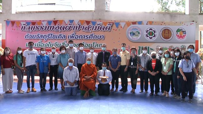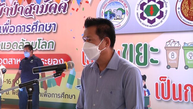 ชุมชนวัดชากลูกหญ้า จับมือวิทยาลัยเทคนิคนิคมอุตสาหกรรมระยอง สำนักงานนิคมอุตสาหกรรมมาบตาพุด และผู้ประกอบการภาคอุตสาหกรรมในนิคมอุตสาหกรรมมาบตาพุด จัดกิจกรรมทอดผ้าป่าขยะรีไซเคิล เพื่อการศึกษา