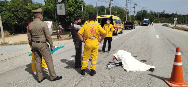 เมื่อเวลา 09.00 น. ของวันที่ 12 มิ.ย. 2565 สภ.หนองขาม ได้รับแจ้งมีรถจักรยานยนต์ชนท้ายรถบรรทุก มีผู้เสียชีวิตบนถนนหนองแขวะ- บ่อวิน หน้าหมู่บ้านบ้านเลควัลเลย์ จึงไปตรวจสอบที่เกิดเหตุ พร้อมด้วยหน่วยกู้ภัยเพี้ยวเยี้ยงไท้ศรีราชา