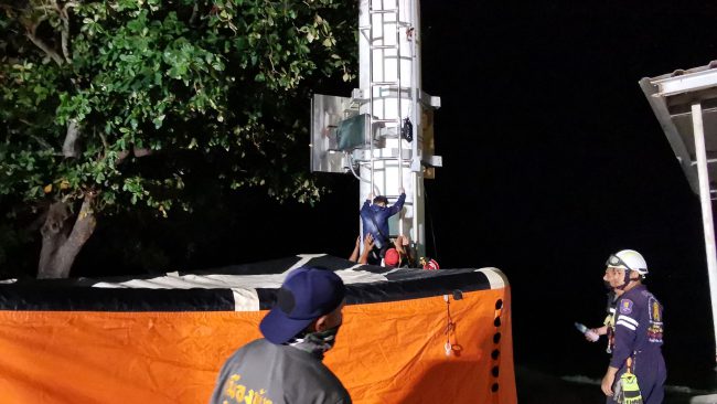 ชลบุรี-ชาวจีนเครียดถูกโกงเงินล้าน ปีนหอคอยเตือนภัยสึนามิ จนท.กล่อมนาน 4 ชั่วโมง