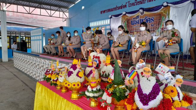 เมื่อเวลา10.00น.(16 มิย.2565) ทางโรงเรียนบ้านเขาคันทรง ตำบลเขาคันทรง อำเภอศรีราชา นางสาวชนิตว์พร ชมกลิ่น ผู้อำนวย ได้จัดพิธีไหว้ครูขึ้น ซึ่งในวันนี้เหล่านักเรียนได้ร่วมกันประดิษฐ์พานดอกไม้ ธูป เทียน ที่มีองค์ประกอบแบบปฎิบัติโบราณ ถึงแม้ว่าดอกไม้แต่ละชนิดจะมีความแตกต่างกัน โดยเฉพาะภูมิกำเนิดของต้นไม้แต่ละต้น ดอกไม้บางชนิดสวย บางชนิดก็ไม่สวย แต่เมื่อนำมาประดับไว้ในพานบูชาครู ก็ทำให้สวยงาม มีคุณค่ายิ่ง