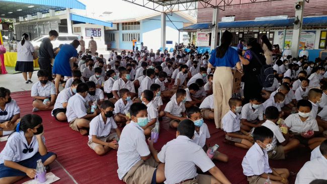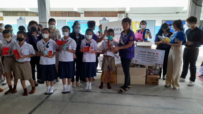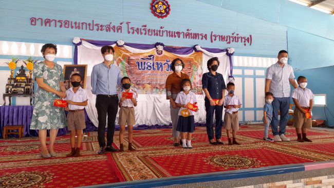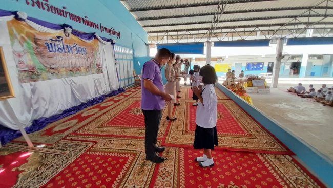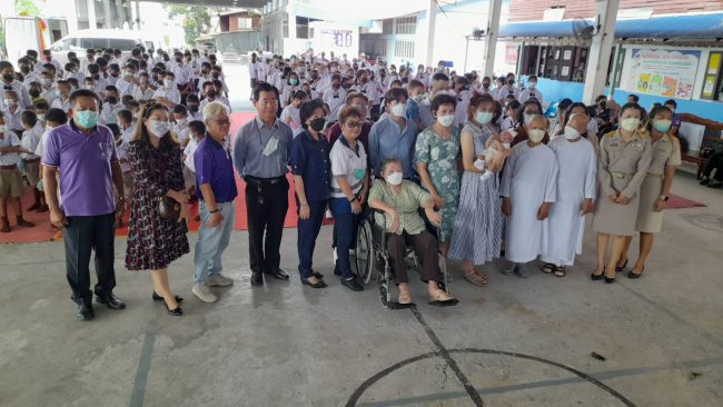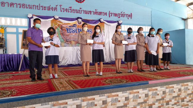ซึ่งมีดอกไม้สัญญาลักษณ์มงคล ดอกเข็ม ดอกมะเขือ หญ้าแพรก แทนปัญญา ความก้าวหน้า ไม่หยุดนิ่ง และอดทนไม่หวั่นไหวง่าย ซึ่งเป็นสิ่งสำคัญในการดำเนินชีวิตประจำวัน หลังจากนั้น ได้มีการมอบทุนการศึกษาให้กับนักเรียน โดยทางพระครูสิทธิพงศ์มุนีได้ มอบเงิน จำนวน 5,000 บาทในนามทุนคุณแม่สาลี่ และคุณสุพัตรา บุญอนันธนสาร และบริษัทโยทะกาเอทเตท พร้อมครอบครัว คุ้มล้วนล้อม มอบเงินจำนวน 20,000 บาท แบ่งเป็นทุนละ 500 บาท มอบทุนการศึกษาให้ นักเรียนผู้มีผลการเรียนดี มีความประพฤติดี ทั้งหมด 50 ทุน ซึ่งการมอบทุนในครั้งนี้ให้กับนักเรียนทุกระดับชั้น ที่เรียนดี ประพฤติดี
