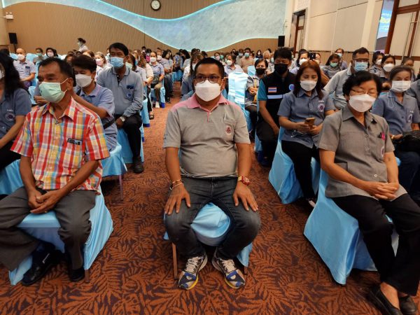 # เวลา 14.00 นาฬิกา วันอังคารที่ 21 มิถุนายน พ.ศ.2565 ณ ห้องแก้วเจ้าจอม สำนักงานองค์การบริหารส่วนจังหวัดชลบุรี นายวิทยา คุณปลื้ม นายกองค์การบริหารส่วนจังหวัดชลบุรี เป็นประธานมอบเงินอุดหนุนให้โรงพยาบาลและมอบเสื้อ อสม.ให้กับอาสาสมัครสาธารณสุขมูลฐาน( อสม.)อำเภอเมืองชลบุรี มี นายเรวัต ผลลูกอินทร์ รองนายกองค์การบริหารส่วนจังหวัดชลบุรี นาบอุดมศักดิ์ เจริญวุฒิ รองนายกองค์การบริหารส่วนจังหวัดชลบุรี พร้อมด้วย เลขานุการนายกองค์การบริหารส่วนจังหวัดชลบุรี ปลัดองค์การบริหารส่วนจังหวัดชลบุรี สมาชิกสภาองค์การบริหารส่วนจังหวัดชลบุรี ผู้อำนวยการโรงพยาบาลชลบุรี ผู้แทนผู้อำนวยการโรงพยาบาลมะเร็ง ชลบุรี ผู้แทนผู้อำนวยการโรงพยายาลมหาวิทยาลัยบูรพา ประธานอาสาสมัครสาธารณสุขมูลฐานและสมาชิกอาสาสมัครสาธารณสุขมูลฐาน ( อสม.) 18 ตำบล อำเภอเมืองชลบุรี เข้าร่วมประชุมจำนวนมาก